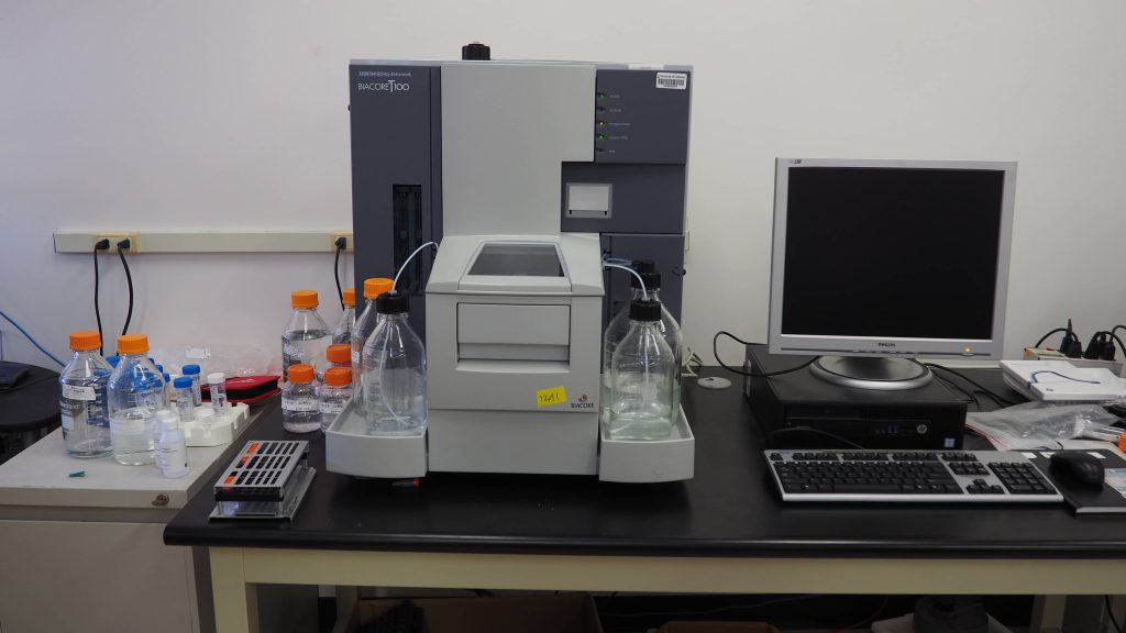 The Biacore T-200 is a surface plasmon resonance (SPR) instrument used to measure biomolecular interactions in real time without the need for labeling. It provides detailed kinetic and affinity data, including association and dissociation rates. This system is widely used for studying protein–protein, protein–DNA, and small molecule interactions in drug discovery and basic research.